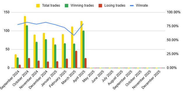 All Signals, trade details, and summaries are organized by month. Below you’ll find key statistics and information on how to read the data.
